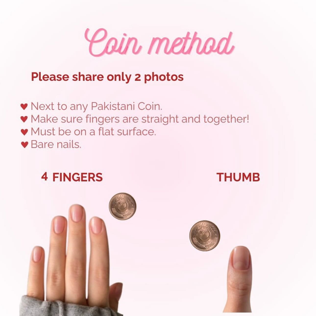 Upload Four fingers with a coin and a separate picture of thumb with a coin